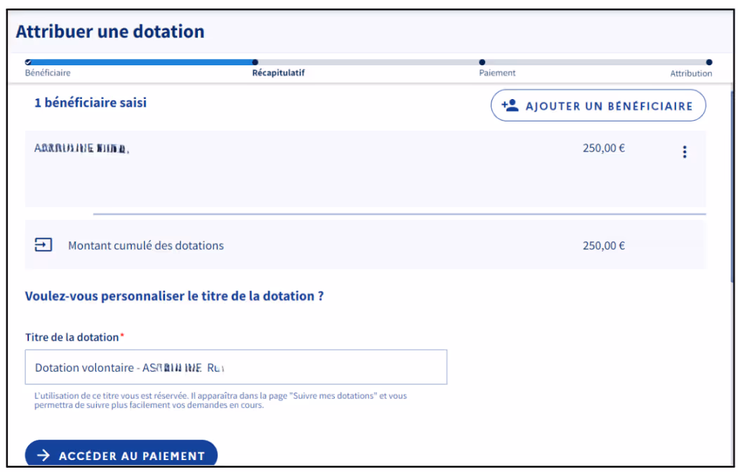 Vous pouvez aussi ajouter plusieurs bénéficiaires si besoin, jusqu’à 20 personnes en saisie manuelle, ou 100 via un fichier.
