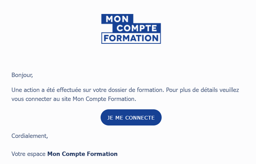Une fois le financement disponible, vous recevrez une notification de la part de Mon Compte Formation.