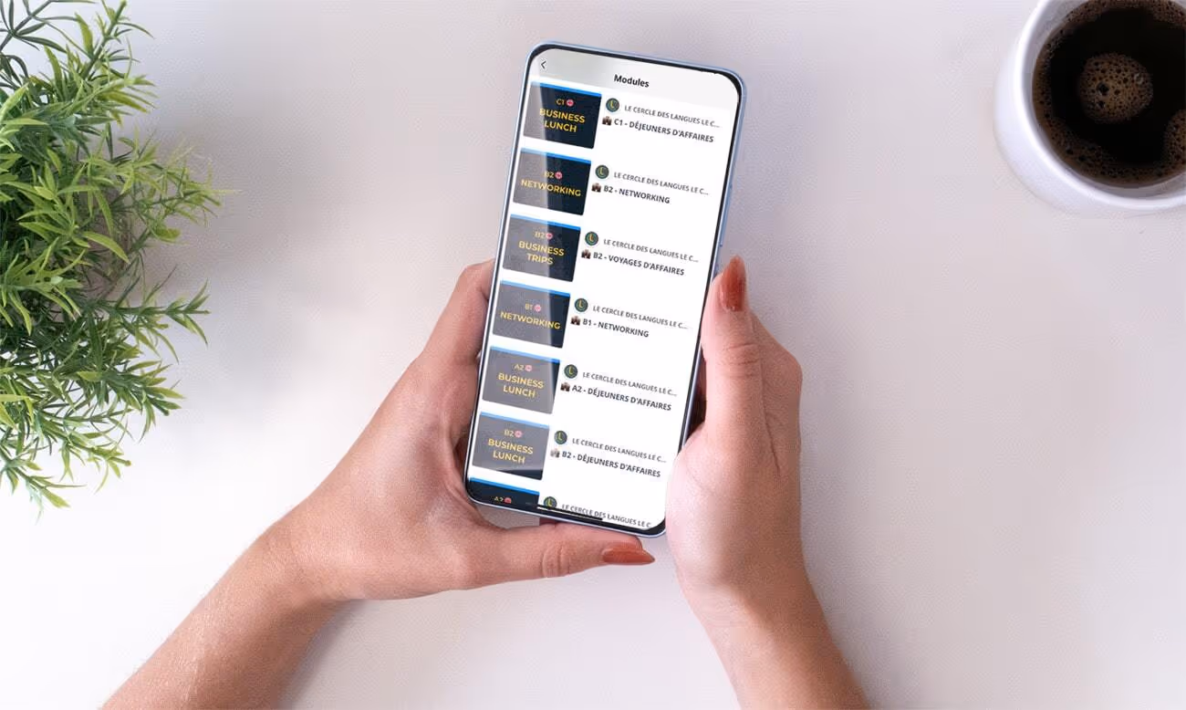 Nos formations d'anglais étant en ligne, vous avez seulement besoin d’un ordinateur, ou d’un smartphone. Les cours se font en webcam, et notre plateforme de e-learning est disponible sur ordinateur ou sur une application accessible sur smartphone.